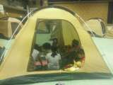テントを張った後は、夕食。 夕食は、流しそうめん。みんな、お腹がすいていたの...