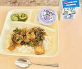 【マーボーあつあげ丼、きゅうりの中華あえ、ぶどうゼリー、牛乳】 マーボーあつ...