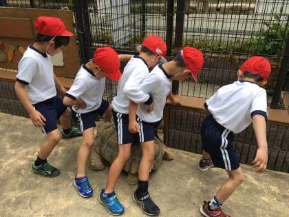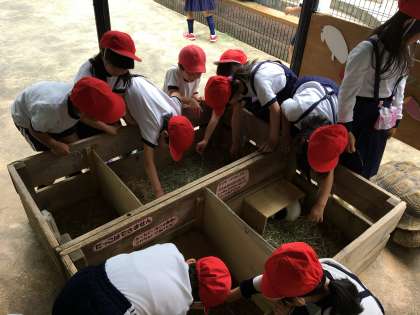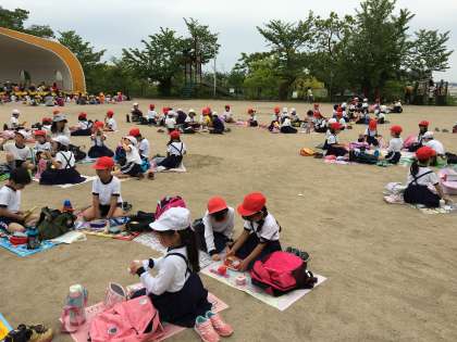 5月9日に1年生初めての遠足に行きました。十三駅までも長い道のりのようでしたが、今回は、2年生のお兄さん、お姉さんがリードしてくれ、1年生をしっかり支えてくれました。電車の中でも、2年生のお手本を見て、マナー良く過ごすことができました。五月山公園では小さな動物とふれ合い、「さわれたー!」「かわいいー!」と大興奮でした。1・2年生でグループになってお弁当を食べたり、遊んだり、楽しい遠足となりました。