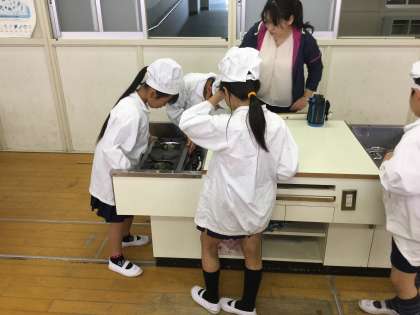 21日(火)、22日(水)にゆで野菜のサラダの調理実習をしました。初めての本格的な調理実習ということで、子どもたちは朝からどきどきわくわく。学習したことを生かして、調理していきます。切り方がわからない子も、友だちに教えてもらいながらおそるおそる切っていました。そして一番楽しみの試食タイムでは……「かたい!」「生のままや〜!!」残念ながらゆでたりなかったようです。何とか食べ終え、コンロをみがき、シンクをふき取り最後まで片づけをしました。
