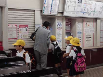 行きは神崎川駅から十三駅まで電車に乗りました。神崎川駅では自分で切符を買いました。どこにお金を入れたらいいのかや、どのボタンを押すのかなど確認しながら買い、その切符で改札を通った時にはとてもうれしそうな顔をしていました。