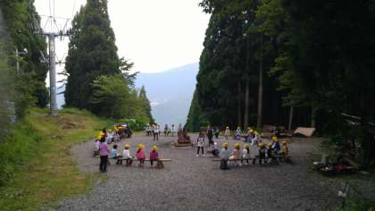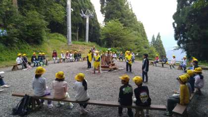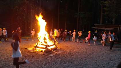 夕食後のキャンプファイヤーでは、「火の神様」が登場し、大盛り上がりでした。レクリエーションでは、たくさん声を出して、たくさん踊って、夜になっても元気いっぱいでした。