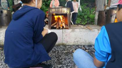 作ることより時間がかかったのは、お片付けです。鍋についた真っ黒なススを隅々まで洗い落とさないと合格をもらえません!最後に合格した班は、みんなでジャンプしながら喜び合っていました。