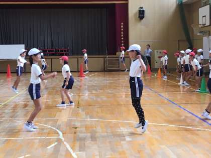 8月30日(金)の3時間目に出前授業でタップ体操と走り方の学習を行いました。