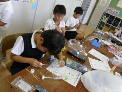 生活科の学習で、おもちゃ作りに取り組んでいます。