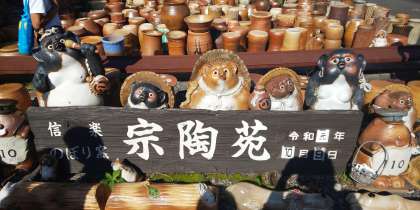 たぬきの置き物がたくさん!