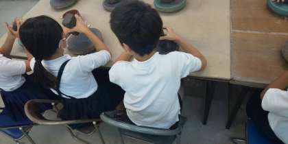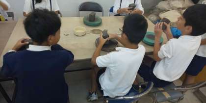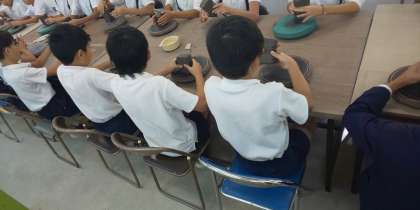 ろくろを配られるなり、どの児童も嬉しそうに回転させていました!