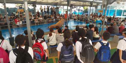最後はセイウチさんとの触れ合いタイムがあり、「可愛い〜!」と触りにいく児童も…