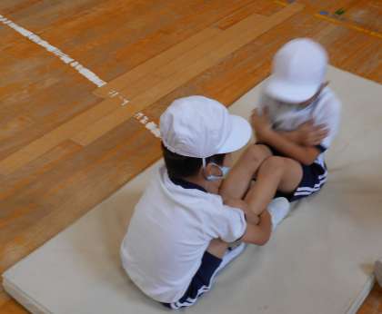小学校で初めてのスポーツテストを行いました。反復横跳びや20mシャトルランは6年生のお兄ちゃん、お姉ちゃんに見本を見せてもらったり、たくさんお手伝いをしてもらったりしました。自分たちでもできることをし、これからももっと体力をつけようという意欲にもつながりました。