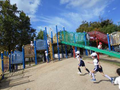 1,2年と一緒に校外学習に行きました。グランドでは、S字ジャンケン、なぞなぞ、ならび替えゲーム、ふえおになどをしました。また公園の遊具で遊ぶときは、小さな子が遊びに来ていても、譲り合いをしながら楽しく活動することができました。1,2年で一緒に遊べてうれしそうな表情がたくさん見れました。