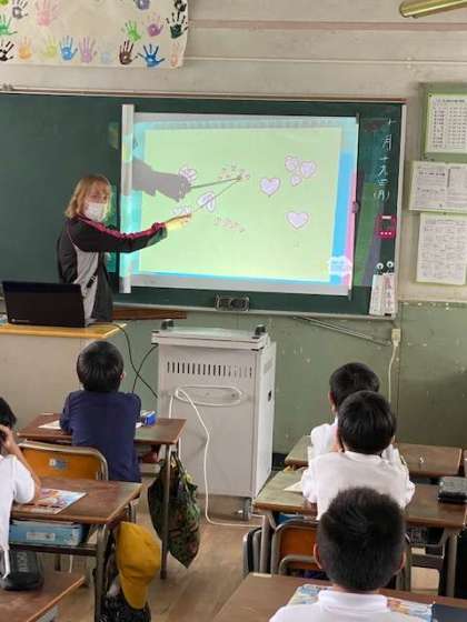 普段の担任のつたない英語ではなく、ネイティブな発音を肌で感じながら積極的に受け答えしています。聞き取りには四苦八苦していますが、ジェスチャーを交えながら楽しく学習しています。