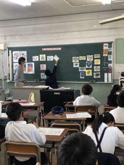栄養指導では、朝ごはんの大切さについて学習しました。赤、黄、緑色の食べ物が入るように献立を考えました。