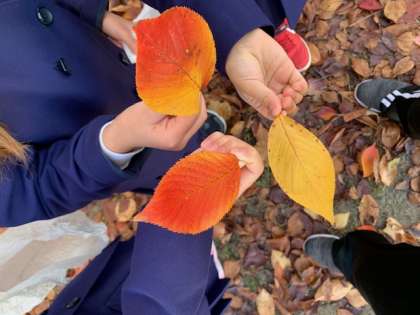 あきたんけんに行きました。きいろやあかなどいろいろな葉っぱや木の実を見つけながら、秋の雰囲気を楽しむことができまいた。
