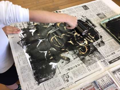 図画工作科の紙版画の学習で、自分の顔を作り、版を刷る活動をしました。ローラーにインクを付けて、版へインクを付ける活動がとても楽しかったようです。また、バレンを持って刷る作業も、「どんな仕上がりになるのかな〜」とワクワクした気持ちが伝わってきました。楽しく活動することができましたね。