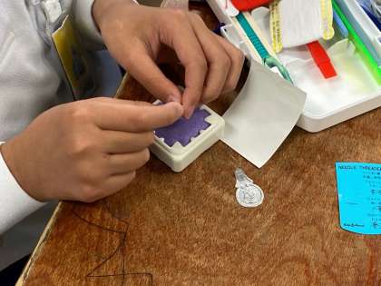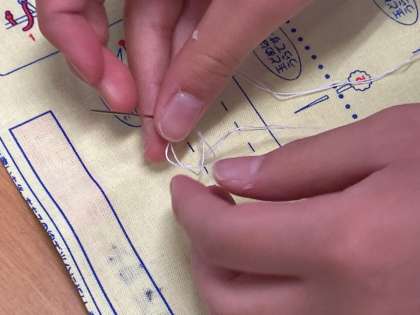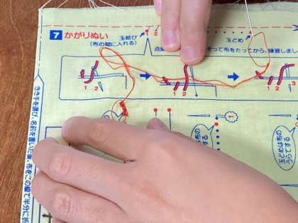 家庭科の時間に裁縫の学習を始めています。糸通しや玉結びに苦戦をしながらもがんばっています。思うようにいかず何度もやり直しをして時間ぎりぎりまでやっていました。