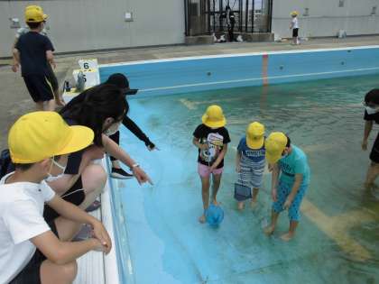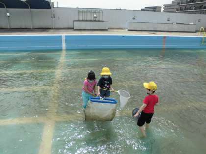 生活科の生き物さがしの学習を、学校のプールでしました。