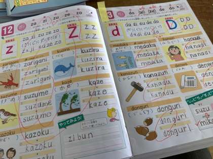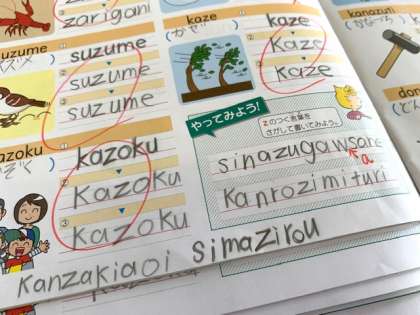 ワークブックを使ってローマ字の習得に頑張っています!ずいぶんと丁寧に書けるようになってきましたし、長い言葉も書けるようになってきました。好きなアニメや漫画のキャラクター名を書けるようになったことを嬉しそうに報告してくれます。