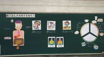 今日の2時間目、3時間目に栄養指導を行いました。新高小学校の栄養教諭の先生に、「朝ごはんの大切さを知ろう」という授業をしていただきました。朝ごはんのはたらきを教えてもらった後、黄・赤・緑のバランスの取れた朝ごはんのメニューを考えました。ちゃんと和食・洋食に合わせて楽しく料理を選ぶことができました。