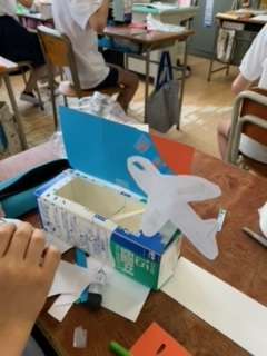 音楽科ではラバースコンチェルトの曲の学習、図工科ではクランクを使って作品づくりをしています。