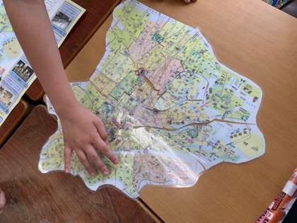 できあがったパズルの1つをはずし、どこの区か楽しそうに当て合いをしている班もありました。
