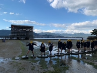天気が悪かった時がありましたが、宮島に渡ると晴れ間があり、雨も上がりました。少し早めに水族館に着き、今から見学です。