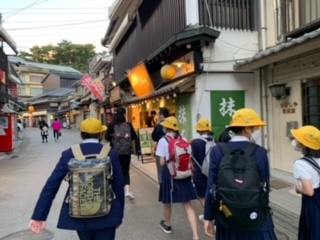 ホテルにつきました。水族館からホテルに向かうときに、明日お土産を買う表参道商店街を通りました。明日何を買おうかなとみんな考えていました。