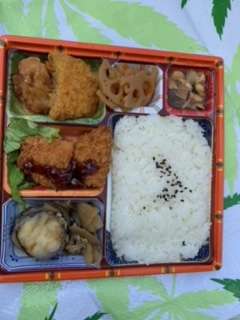 宿舎前の広場でお弁当を食べました。美味しいという声がたくさん聞かれました!