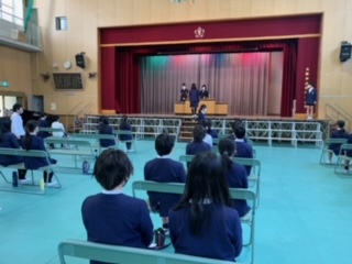 いよいよ来週卒業式です。今日は係の先生にも来ていただき全体練習をしました。会場に本番の雰囲気が出てきて子どもたちは緊張した様子でした。