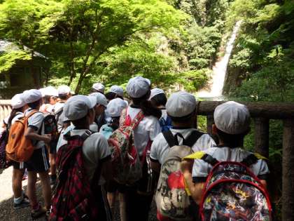 5年生の遠足は、台風で延期となり、5月21日(木)にやっと春の遠足に行くことができました。林間に向けての第一歩ということで、誰とでも協力すること・一人ひとりが自分で考えて行動できるようにすることを目標に取り組みました。三ノ宮駅からの長い坂道を歩き、さらに山を登ってハーブ園に向かいました。前日が雨だったため、あまり足場のよくない中、子どもたちは一生懸命に登りました。途中、「もういやや。」、「無理や〜。」、「しんどい。」などの言葉が聞かれましたが、子どもたちは「がんばろう!」、「最後までみんなで登ろう!」と声をかけ合い、全員無事登りきることができました。