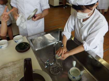 少し蒸らしすぎたのか、「にが〜い」と言いながらも、自分で入れたお茶をみんな、とても味わって飲んでいました。安全に気をつけ、片付けまでしっかりと頑張ることができました!!