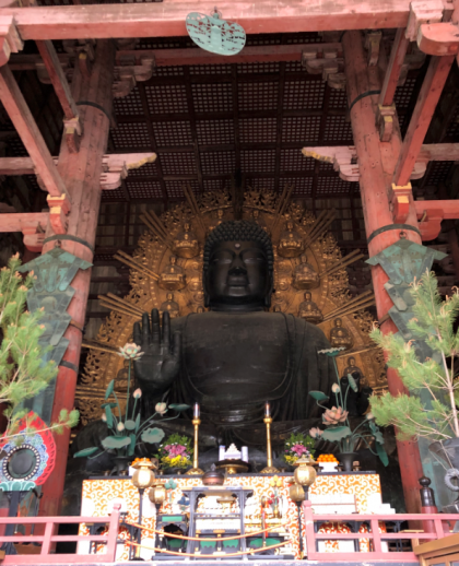 おいしいお弁当を食べた後は、東大寺に行きました。今見ても大きくて圧倒されるのに、クレーンなどがない時代どうやって造ったんだろう??と不思議そうでした。6月ごろの社会で学習します!