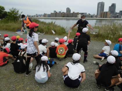 地域・区役所の方や見守り隊の方など、たくさんの人々に見守られ、自分たちの住む町の自然(淀川)の様子を観察することができました。