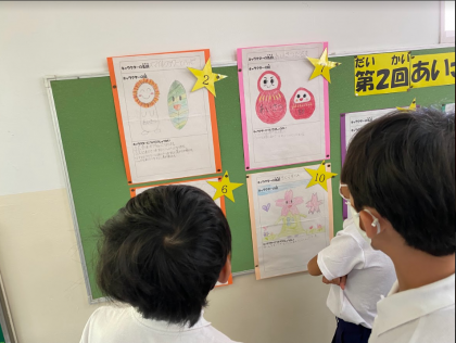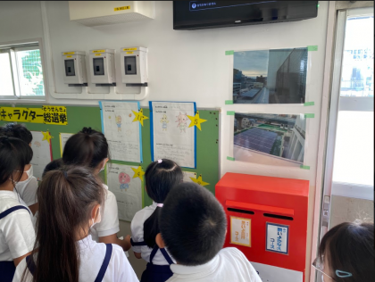野中小学校は今年度で80周年を迎えます。その記念に、第2回あいさつキャラクター総選挙が開催されました。1学期には、たくさんの応募の中から12個のキャラクターが選ばれました。今回は、その12個のキャラクターの中から1つを選んで投票します。どのキャラクターも80周年ということをよく考えて作られているので、子どもたちはとても悩んで投票していました。「どのキャラクターになるかな。」「自分が投票したキャラクターが選ばれてほしい。」と、とても楽しそうでした。結果発表が待ち遠しいです。