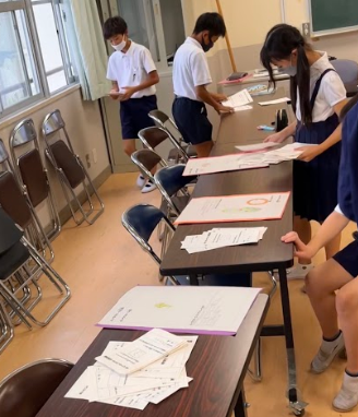 集計後は、9/12から始まる「あいさつ週間」の準備をしていきました。今年は、お面をつけてあいさつをしていく予定です。
