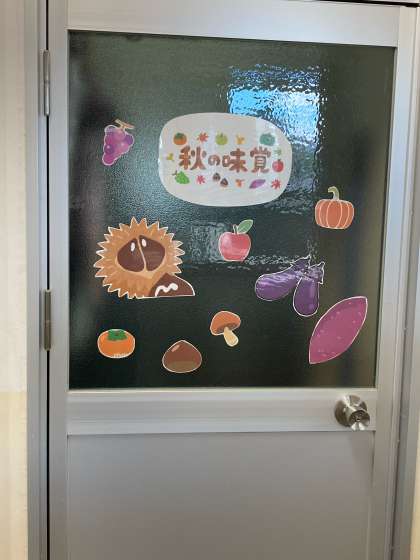 毎月、給食室に飾り付けを調理員さんがしてくれています。
