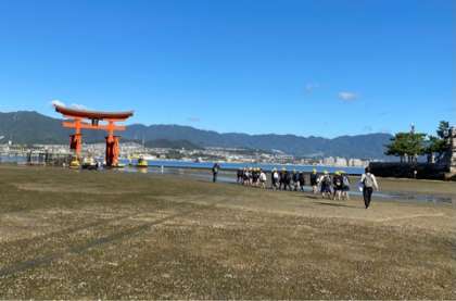朝、厳島神社に参拝をしてきました。潮が引いていたので近くまで行くことができました。生き物もたくさんいました。