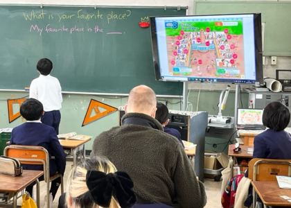 4年生では、月に1回、ネイティブのコリ—先生に英語を教えてもらいました。子ども達は、コリ—先生のとても楽しい授業に、毎回引き込まれ、楽しく英語に親しむことができました。5年生からは、外国語が教科となります。さらに、興味を持ってがんばってほしいと思います。