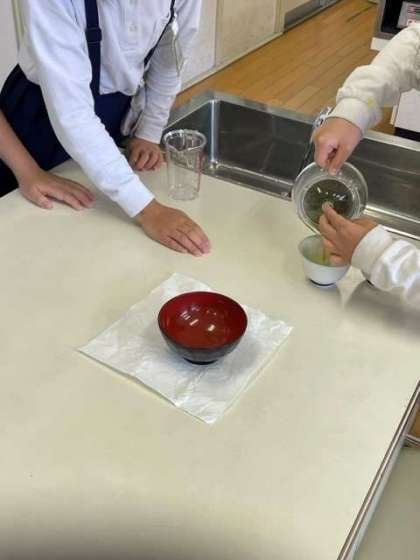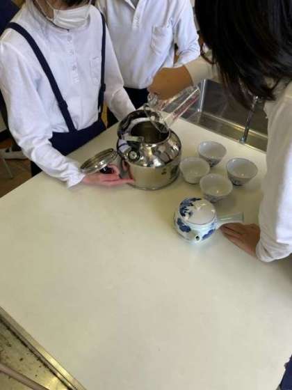 家庭科の学習で、お茶の入れ方を学習しました。