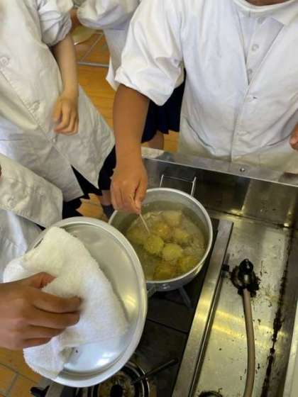 家庭科の調理実習で、じゃがいもをゆでて食べました。