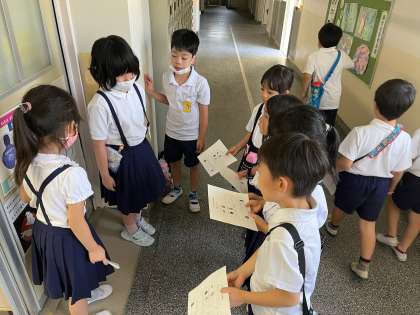 7月6日(木)の5時間目に、学校探検をしました。2年生が特別教室の前で待ち、グループでやってきた1年生に教室の説明をしました。一生懸命に教室の説明をする2年生はとても立派で頼もしく、グループではぐれないように静かに歩いて移動する1年生も成長を感じました。