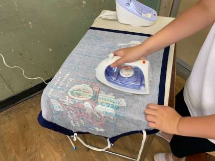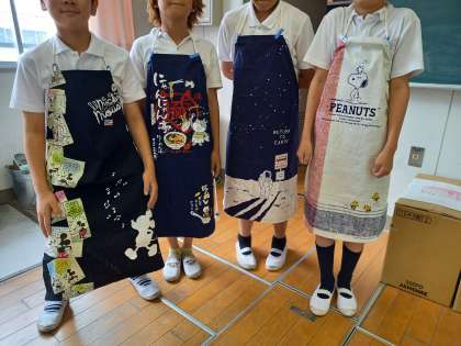 6年生の家庭科、ミシンを使ってエプロンを縫いました。昨年のナップサック作り以来のミシン作業です。アイロンでしつけをし、ミシンで縫う。ミシンとの相性もあり苦戦する子もいました。何とか1学期中に全員縫いあがりました。長く使えるよう丈夫に縫いました。中学校でも使ってくれるかな。