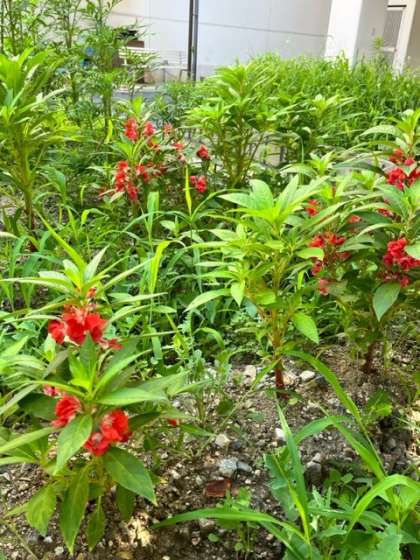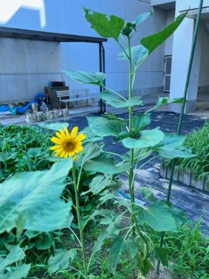 7月24日、ヒマワリの花が1つ咲いていました。隣のマリーゴールドもようやくつぼみをつけていました。ホウセンカも次々と花を咲かし続けています。もうすぐ、3つの花が咲きそろいそうです。4月に理科の学習で「タネ」の観察をしてから、その成長を楽しみにしてきた子ども達です。学習園のそばを通られたら、ぜひ、学習園をのぞいてみてください。