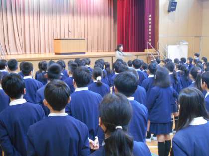久々に学校に子どもたちが戻ってきました。新たな1年のスタート、3学期始業式をみんなで行いました。