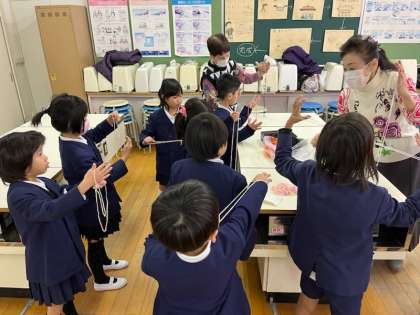 1月12日(金)2・3時間目に、地域の女性会の方々に、昔遊びを教えていただきました。短い時間でしたが、折り紙、あやとり、おはじき、お手玉、けん玉、こま回しなど、とても楽しく活動することができました。