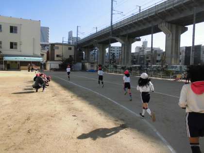 2月7日に野中小学校の運動場で低学年の持久走記録会がありました。10分間同じ速さで走り続けることができることを目標に、これまで体育の時間やかけ足タイムを使って練習に励んできた子ども達です。大会本番は、友達や保護者の方の声援を受け、いつも以上に力を発揮できていたように思います。
