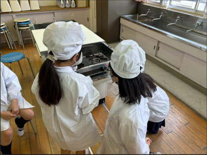 今日は家庭科室で初めての実習を行いました。やかんでお湯を沸かして煎茶を淹れました。お茶の濃さや熱さを各班で考え、美味しいお茶を作りました。苦い煎茶でも自分で淹れたお茶なので美味しく飲んでいました。