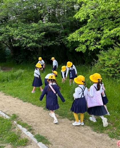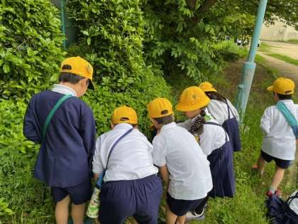 雨でしばらくの間延期になっていた、生活科の学習「はるみつけ」の学習に、野中南公園へ行ってきました。初めての校外学習で、校外へ並んで歩いていくことにも「ワクワク・ドキドキ」な一年生でした。公園では、見つけた小さな虫たちや草花に目を輝かせていました。