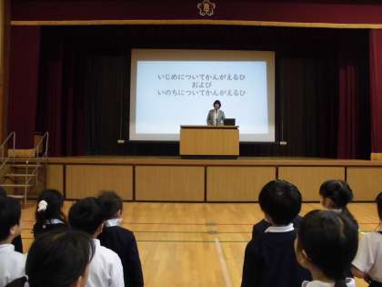 児童朝会では、校長先生の読み聞かせがあり、「自分のイライラしている気持ちを知らない間に誰かにぶつけていないかな」と子ども達に質問されました。子ども達はそう言われて、自分の行動をふり返っていたようです。