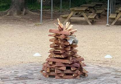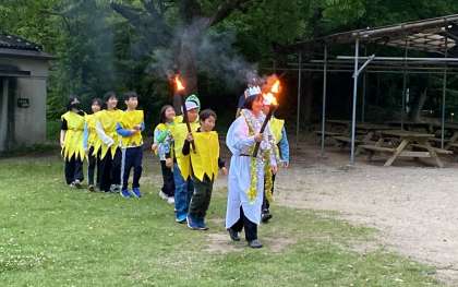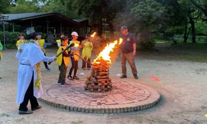 火の神たちにキャンプファイヤーに大事な火を灯してもらいました。