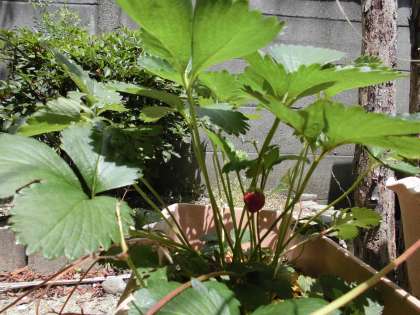 児童が水やりをして、苺がいくつも実りました。そろそろ収穫時期は終わりそうですが、隣のプランターではサトウキビが育ってきています。大きくなるか楽しみです!